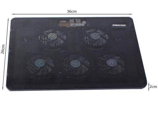 Podkładka chłodząca pod laptopa o wymiarach od 12 do 17 cali posiada pięć wbudowanych, wydajnych wentylatorów.