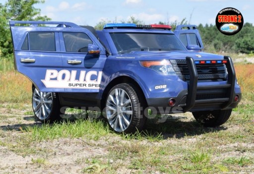 Atrakcyjny duży i masywny samochód policyjny na akumulator o niepowtarzalnym wyglądzie. Samochód może być sterowany za pomocą pilota zdalnie jak również przez dziecko siedzące wewnątrz auta. Pojazd przeznaczony jest dla dzieci w wieku od 1 do 7 lat. Maksymalne dopuszczalne obciążenie 35 kg. Napęd zapewniają mu dwa potężne silniki elektryczne o mocy 45W każdy, zasilane jednym dużym akumulatorem 12V. Na wyposażeniu pojazdu znajdują się uruchamiane przyciskami efekty dźwiękowe, wejście na odtwarzacz MP3, regulator głośności, światła LED i syreny policyjne. Dostępne są 3 prędkości poruszania, zarówno do przodu jak i do tyłu. Bezpieczną naukę jazdy zapewnia dołączony pilot zdalnego sterowania, dający rodzicowi pełną kontrolę nad pojazdem. Pojazd jest sterowany z za pomocą inteligentnego pilota 2,4 Ghz pilota z możliwością kontroli prędkości przez rodzica i z możliwością zahamowania za pomocą pilota - NOWOŚĆ wraz z systemem wolnego startu i wolnego zatrzymywania się. Posiada miękkie siedzenie i miękkie koła EVA.