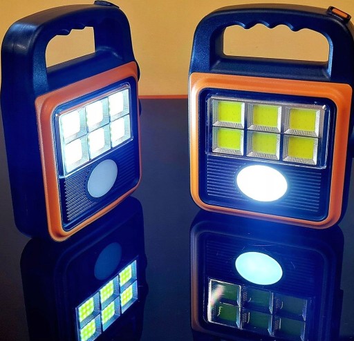 - Główne, mocne światło - 6 paneli COB - barwa biała 5000K, dzienne, żywe światło, doskonale oświetla duże pomieszczenie przez 36 godzin na jednym ładowaniu