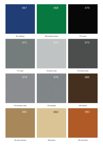 Wzornik kolorów w jakich możesz zamówić produkt: