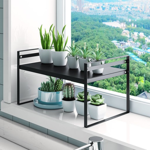 Regulowany stojak do przechowywania, metalowa półka kuchenna, stojak do przechowywania w kuchence mikrofalowej 20x24cm, regulacja wysokości 34-54cm, czarny, 1 sztuka