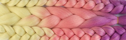 Włosy syntetyczne w przepięknym wariancie kolorystycznym - żółto-różowo-fioletowym. Wykonane z puszystego poliestru.