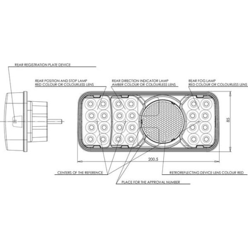 - Funkcja: Tylna|Kierunkowskaz|Światło pozycyjne|Stop|Przeciwmgielna|Oświetlenie tablicy rejestracyjnej|Odblaskowa