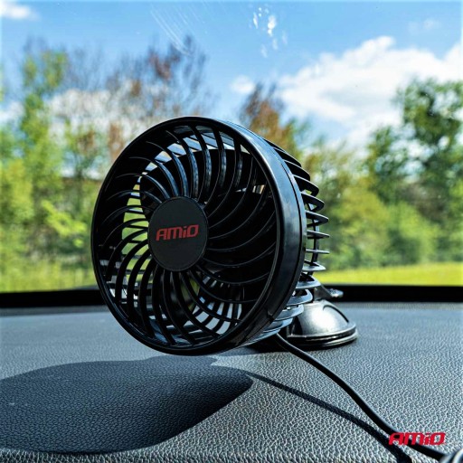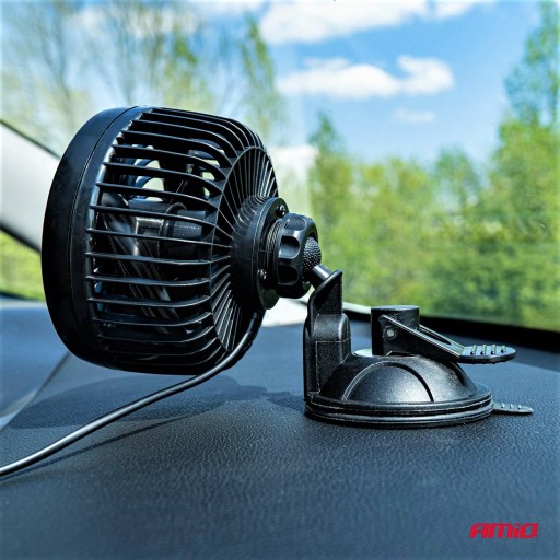AMiO PRO WIATRAK WENTYLATOR SAMOCHODOWY ZASILANY Z ZAPALNICZKI SAMOCHODOWEJ 12V MOCOWANY NA PRZYSSAWKĘ