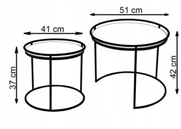 - Okrągłe blaty o średnicy 51 cm i 41 cm