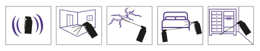 - Zabieg rozpocząć od najdalszej części pomieszczenia i stopniowo przesuwać się w kierunku wyjścia. Czas oprysku 2 m² powinien wynieść ok. 30 sekund.