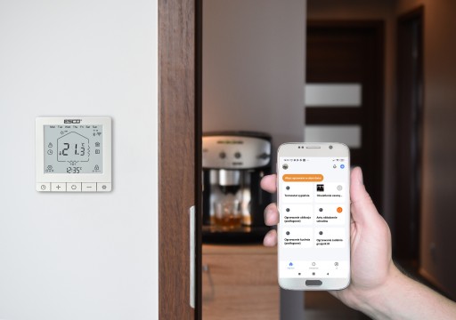 Termostat z funkcją WiFi umożliwia sterowanie temperaturą za pomocą telefonu lub tabletu z urządzeń opartych o system android lub ios, poprzez m.in przez aplikację SMART LIFE, TUYA i inne.