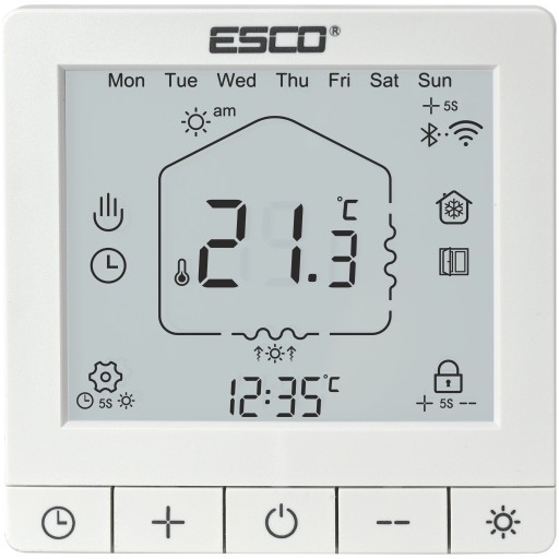 Regulator Polskiej marki ESCO może pracować z 2 czujnikami temperatury. Sterować temperaturą podłogi, powietrza lub oboma na raz. Wykorzystując dodatkowy czujnik temperatury możemy ograniczyć temperatury podłogi dla zdrowia, komfortu oraz bezpieczeństwa.