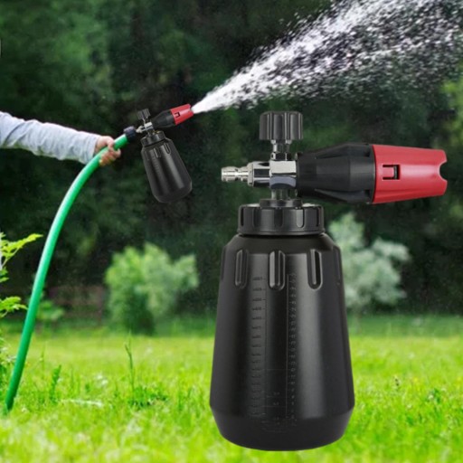 Myjka ciśnieniowa wielokrotnego użytku: butelka z pianką o szybkim interfejsie 1/4 ", butelka z rozpylaczem z pompką piankową o pojemności 1000 ml może być używana nie tylko do roślin, ogrodu, pielęgnacji trawników, ale także do czyszczenia w gospodarstwie domowym, mycia samochodów itp.