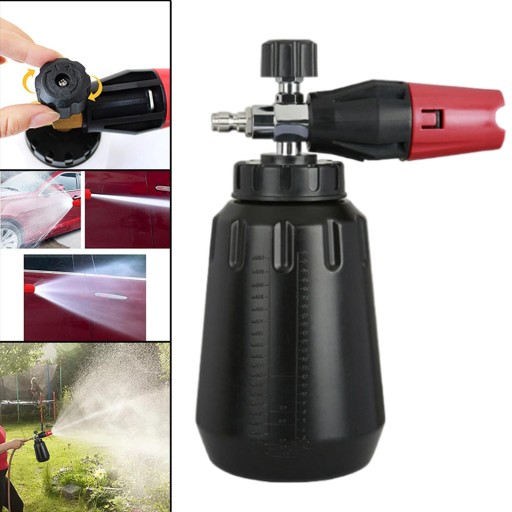 ŁATWY W UŻYCIU: wlej trochę mydła do butelki z wodą, aby uzyskać gęstą pianę; Szybkozłączki 1/4 cala do adaptera myjki ciśnieniowej, wyreguluj pokrętło, aby uzyskać żądany tryb natrysku regulacji poziomu piany.