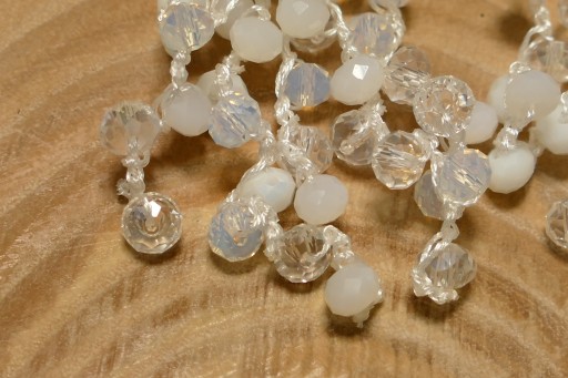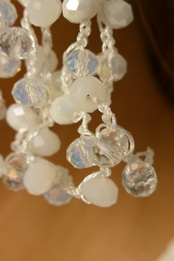 każdy kryształek opleciony jest błyszczącą nicią w splocie szydełkowym