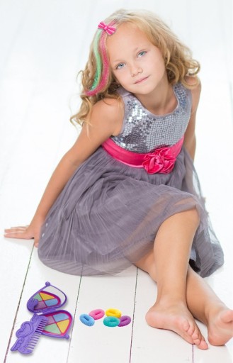 Kolorowy komplet z aplikatorem pasemek odbije serce wszystkich dziewczynek, które lubią tworzyć fantazyjne fryzury ! Zestaw pozwoli na zrobienie wielu fryzjerskich stylizacji idealnie sprawdzą się na imprezach urodzinowych czy balach w szkole czy przedszkolu.