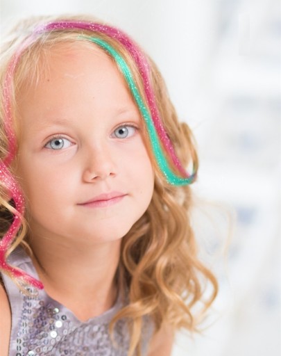 Za pomocą aplikatora do pasemek można pięknie ozdobić fryzurę małej dziewczynki.