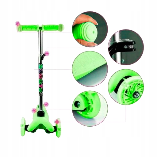 ТРЕХКОЛЕСНЫЙ ДЕТСКИЙ САМОКАТ TOBBI-TOYS БАЛАНСОВЫЕ КОЛЕСА LED ЗЕЛЕНЫЙ