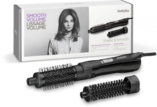Suszarko-lokówka BaByliss AS82E o mocy 800 W z dwoma wymiennymi szczotkami, nadającymi kształt i objętość o gładkim, błyszczącym wykończeniu. Urządzenie pozwala na codzienne modelowanie włosów średniej długości. Dzięki okrągłej szczotce z miękkim włosiem o średnicy 20 mm i drugiej okrągłej szczotce z powłoką ceramiczną o średnicy 38 mm, osiągniesz sukces za każdym razem. Suszarko-lokówka BaByliss AS82E posiada 2 prędkości i 2 ustawienia temperatury oraz nawiew zimnego powietrza.