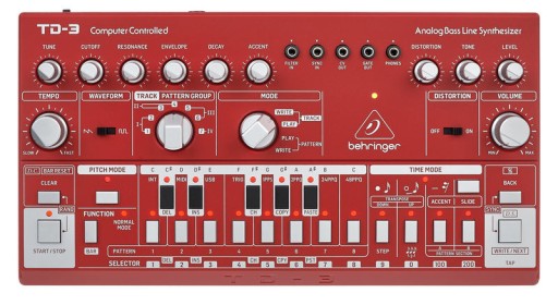 Behringer TD-3 -BU analogowy syntezator linii basowej z VCO, VCF, 16-krokowym sekwencerem, efektami distortion i 16-głosowym poly-chain