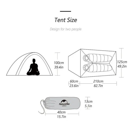 - materiał: 20D nylon (namiot wykonany z materiału 20D nylon, co czyni go o ok. 200-300 gram lżejszym od analogicznych modeli wykonanych z materiału 210T Polyester oraz bardziej kompaktowym po spakowaniu)