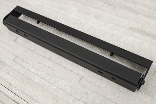 Ruchome mocowanie tablicy rejestracyjnej do zderzaka przedniego ułatwia korzystanie z wyciągarki. Element wykonano z wysokiej jakości stali lakierowanej proszkowo na kolor czarny.