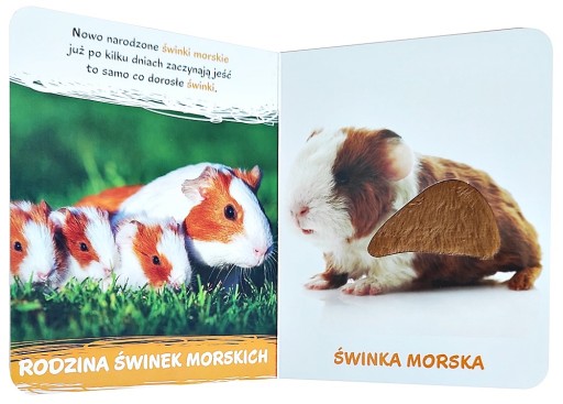 - SYMPATYCZNE ZDJĘCIA i CIEKAWOSTKI angażują do zabawy i poznawania świata zwierząt domowych oraz ich młodych, a MIĘKKIE FUTERKOWE WKŁADKI do głaskania i przytulania.