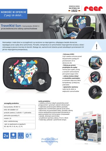 Przeciwsłoneczna osłona samochodowa UV50+ 2sztuki + pokrowiec - TravelKid Sun - REER