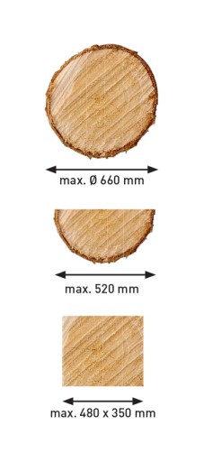 - Regulowany ogranicznik zapewnia pewne i łatwe mocowanie kłód drewna