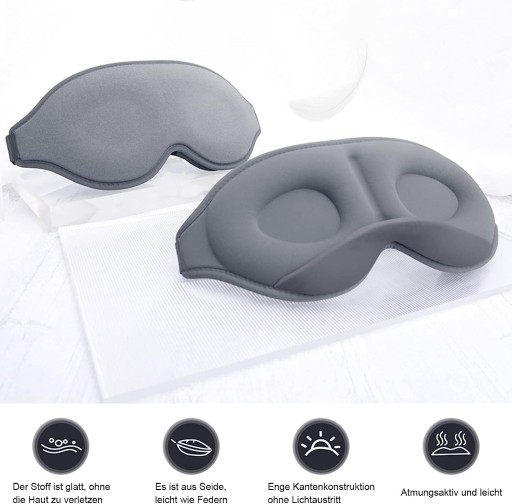 - Trójwymiarowa konstrukcja 3D - dzięki wklęsłej konstrukcji trójwymiarowej okularów do spania oczy mogą się poruszać po noszeniu maski, dzięki czemu nacisk na oczy może zostać zredukowany poprzez długotrwałe noszenie, co bardzo dobrze nadaje się do przerw obiadowych, medytacji, jogi i podróży.