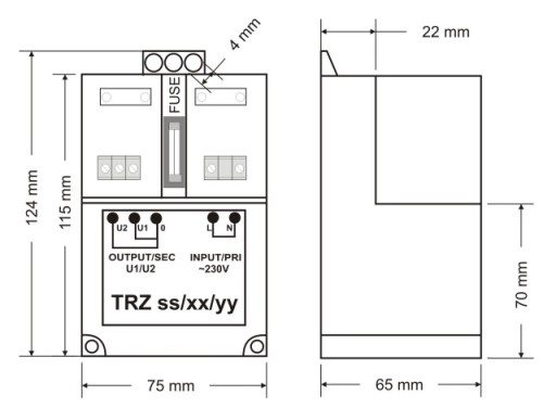Transformator zamienia napięcie sieciowe 230V AC, na napięcie 18V AC lub 20V AC. Przystosowany do zasilania urządzeń systemów alarmowych, których moc skuteczna nie przekracza 60 VA. Transformator posiada zabezpieczenie przeciwzwarciowe i przeciążeniowe, realizowane przy pomocy bezpieczników topikowych.