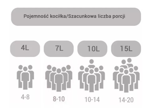 Kociołki dostępne są w różnych pojemnościach. Schemat ułatwi ci dokonanie wyboru i dopasowanie wielkości garnka do twoich potrzeb.