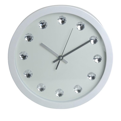 Белые настенные часы с бриллиантами, 30 см.