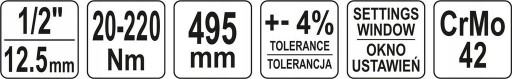 KLUCZ DYNAMOMETRYCZNY 1/2" 20-220Nm
