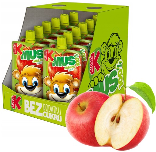 To smaczna pożywna i naturalna przekąska w formie musu z jabłek i bananów bez dodatku cukru. Jest źródłem cennego błonnika, który reguluje pracę jelit oraz witaminy C. Kubuś Mus to idealny produkt dla dzieci na drugie śniadanie w wygodnym, lekkim i bezpiecznym opakowaniu. Dzięki temu jest doskonałą propozycją do śniadaniówki, plecaka, na spacer czy na szkolną wycieczkę! Kubuś to najczęściej kupowany w Polsce sok na bazie Marchwi Mazurskiej i owoców. Kubuś Mus to pierwszy owocowy posiłek od Kubusia. Idealnie zastępuje owoc na drugie śniadanie.
