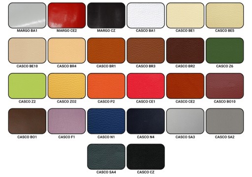 Kolory MARGO to materiał połyskliwy: MARGO BA1-kolor biały, MARGO CE2-kolor czerwony, MARGO CZ-kolor czarny.