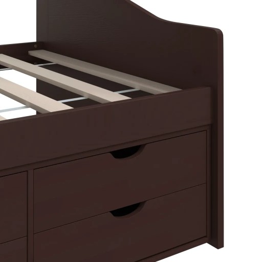 Sofę wykonano z litego drewna sosnowego, dzięki czemu jest mocne i stabilne. Solidne listwy oferują potrzebne podparcie i komfort. Ponadto mebel ten zawiera 5 szuflad do przechowywania złożonych ubrań, zabawek itp.
