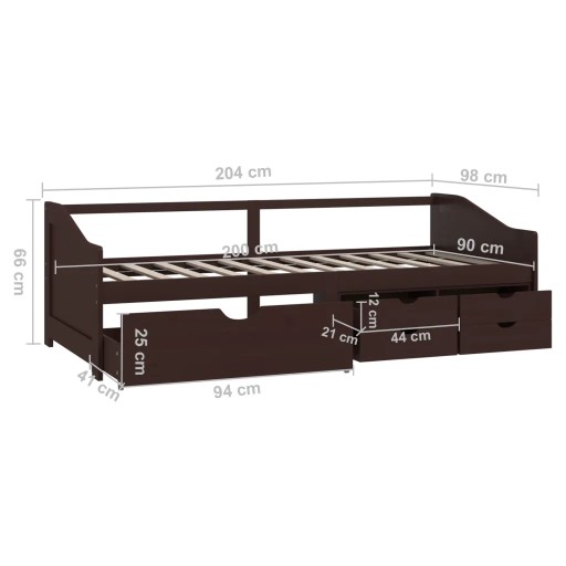 3-osobowa sofa/łóżko z szufladami, ciemnobrązowa, 90 x 200 cm