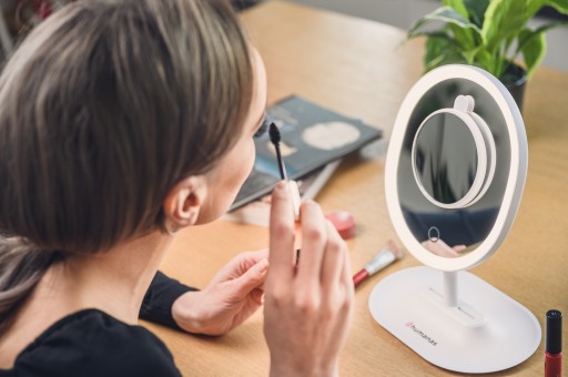 W zależności od pory dnia i efektu, jaki chcesz uzyskać, możesz oświetlić swoją twarz światłem zimnym, neutralnym lub ciepłym. Regulowana temperatura barwowa pozwala dobrać kolor światła tak, aby idealnie odzwierciedlić odcień skóry i nałożonego na twarz makijażu.