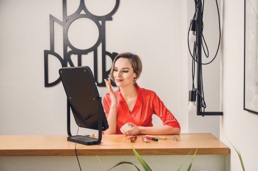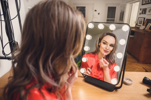 Moc, z jaką świecą wbudowane w lusterko diody LED możesz regulować w zależności od swoich potrzeb. Duża siła sprawdza się w słoneczny dzień, natomiast mniejsza po zmroku lub w ciemnym pomieszczeniu. Idealnie zbalansowane światło nie razi w oczy, co zdecydowanie ułatwia pracę nad charakteryzacją.
