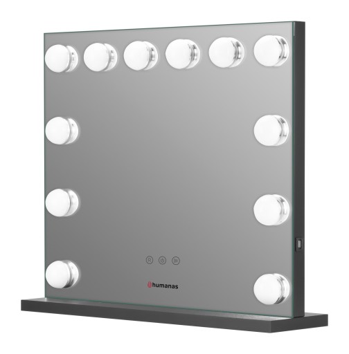 Duże, prostokątne lustro Humanas HS-HM02, wyposażone w 12 energooszczędnych diod LED to pozycja obowiązkowa dla osób, którym zależy na optymalnych warunkach oświetleniowych, niezbędnych podczas wykonywania makijażu lub charakteryzacji. Ta wyjątkowa konstrukcja z powodzeniem sprawdzi się zarówno w domu, jak i w profesjonalnych salonach piękności — nie tylko jako narzędzie pracy, ale także w charakterze designerskiego elementu wystroju nowoczesnej przestrzeni. Lustro zostało wyposażone w dotykowy panel, który umożliwia szybką i wygodną regulację mocy. W trosce o perfekcyjne dopasowanie światła do otoczenia, pory dnia lub Twoich niecodziennych pomysłów na make-up zadbano tu również o 3 poziomy temperatury barwowej — ciepłą, zimną i neutralną.