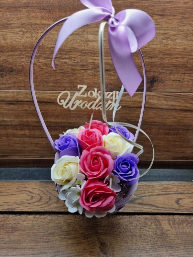 Bukiet kosz upominkowy kwiaty mydlane PACHNĄCE NA PREZENT DZIEŃ BABCI DZIADKA