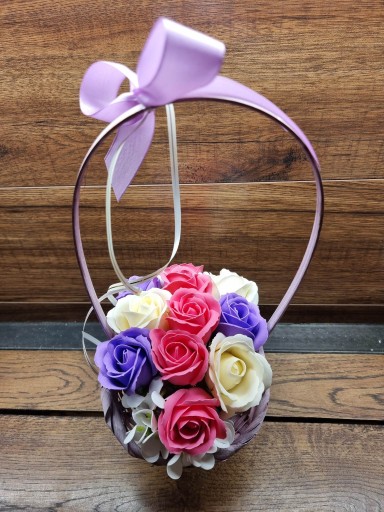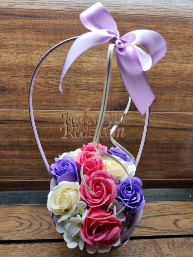 ❤️ Ozdobny kosz, bukiet z kwiatami mydlanymi - piękny prezent oraz delikatnie pachnąca dekoracja dla twojego wnętrza ❤️