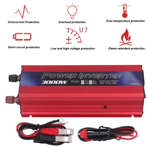 1. POTĘŻNE WYJŚCIE: Konwertuj zasilanie DC 12 V na AC. Zapewnia 3000 watów mocy fali sinusoidalnej. Wyposażony w 1 gniazdko AC i 1 port USB do uniwersalnego ładowania