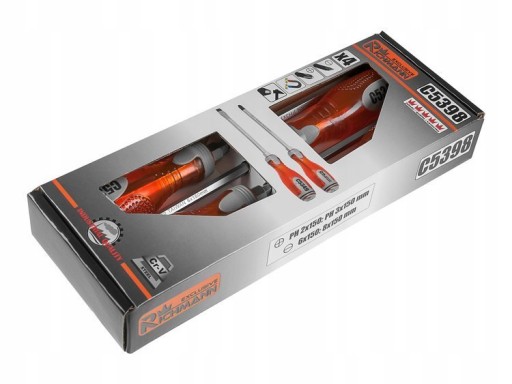 Niezwykle przydatny zestaw wkrętaków krzyżakowych i płaskich zarówno w każdym warsztacie ślusarskim jak i domowym.