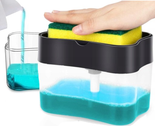 Dozownik na płyn do naczyń SOAP PUMP wyposażony w pompkę i gąbkę jest praktyczny i wygodny. Teraz gąbka nie musi leżeć już w zlewie czasem nawet pod stertą naczyń czy na zlewie obok płynu do naczyń. Dozownik świetnie sprawdza się w podawaniu dokładnych ilości płynu dzięki czemu możesz bez problemu możesz nabrać płynu tyle ile potrzebujesz i nie marnować zbyt dużych ilości go podczas nabierania.