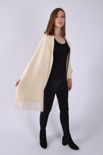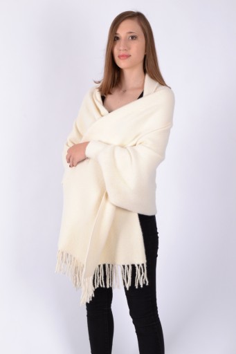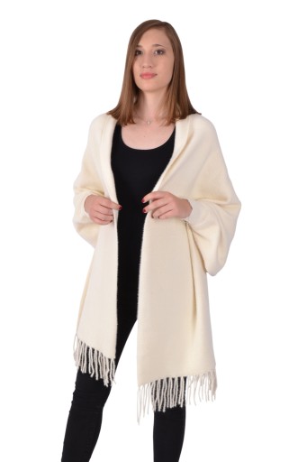 Przedmiotem sprzedaży jest elegancki szal damski z rękawami. Szal wykonany jest z wełny z alpaki. Jest bardzo miękki i miły w dotyku. Na dole zakończony frędzlami. Idealnie pasuje, jako dopełnienie każdej stylizacji! Może być noszony również jako sweter. Dobrze się układa, a dzięki szerokim rękawom nie krępuje ruchów.