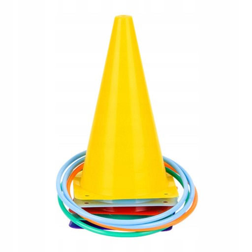 Zestaw do gry zawiera 9 pierścieni do rzucania i 5 pachołków drogowych, które mogą stać na płaskiej lub lekko nierównej powierzchni, a jeśli zostaną zdeptane lub ściśnięte, niełatwo je zdeformować lub wykrzywić.