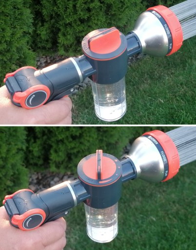 umożliwia lanie samą wodą lub zaciągniecie z płynu / nawozu / detergentu z dozownika.