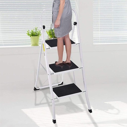 Складная трехступенчатая лестница со стальной противоскользящей ступеней.