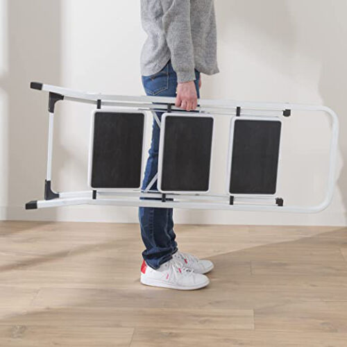 ✅ Rozmiar: drabina 3-stopniowa, otwarta: 44,5 (szer.) × 67 (gł.) × 101,5 (wys.) cm, złożona: 44,5 (szer.) × 4,5 (gł.) × 112 (wys.) cm. Do złożenia i oparcia o ścianę, gdy nie jest używany. Oszczędza części zamienne i jest łatwy do przenoszenia.