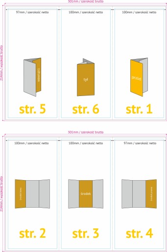 Wymiar ulotki: 297x210mm (po złożeniu 99x210mm)