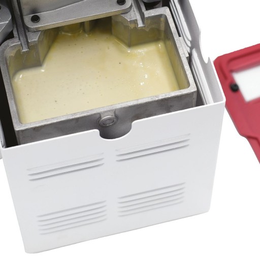 Najnowszej generacji szybki nagrzewacz, który do 5minut roztopi klej. Ponadto, jeśli pojemnik co najmniej do połowy uzupełniany jest klejem to termostat stale będzie utrzymywał maszynę w temperaturze roboczej. Okleiniarka posiada płynną aplikację nanoszenia kleju, która może być łatwo kontrolowana za pomocą dostępnego sterownika. Innowacyjny system aplikowania kleju, który jest o wiele skuteczniejszy niż podwójne aplikowanie, zawsze dokładnie i równomiernie dozuje klej na taśmę bez oznak pomijania miejsc lub przeciekania kleju oraz zanieczyszczenia urządzenia.