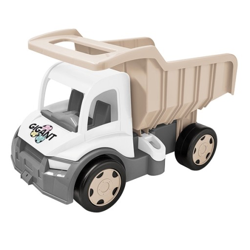 Gigant Wywrotka w kolorze jasnego beżu, mlecznej szarości oraz bieli to fantastyczny, duży samochód o długości 55 cm.